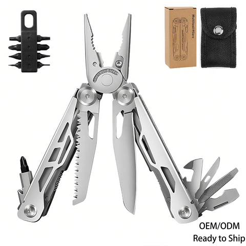 Pinza Multiuso 10-in-1 in Acciaio Inox con Moschettone, Coltello Pieghevole, Strumenti per Crimpatura e Pesca, OEM, Resistente alla Ruggine per Campeggio