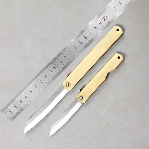 Yüksek kalite japon katı pirinç kolu için üçlü çelik cep taktik katlanır bıçak kamp EDC